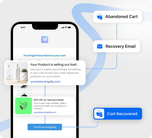 Unlock Cartly’s powerful features to recover lost revenue seamlessly. Automate re-engagement with targeted emails, push notifications, and exclusive incentives—bringing customers back to complete their purchases and doubling your sales.